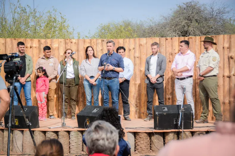 La jornada contó con la presencia del presidente de Parques Nacionales, Cristian Larsen; Sebastián Di Martino, director de Conservación de Fundación Rewilding; Marisi López, directora de Relaciones Institucionales de la Fundación Rewilding; y los intendentes de Misión Nueva Pompeya, Vicente González, y de Miraflores, así como el vicepresidente del Instituto de Turismo, Martín Braillard Poccard, guardaparques y habitantes de la zona.