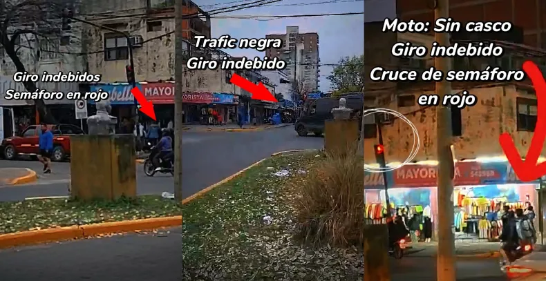 Este lunes, a través de las cámaras de monitoreo móvil se registraron a siete motos y un taxi cruzando semáforos en rojo y realizando giros prohibidos a la izquierda, en el centro de la capital chaqueña.