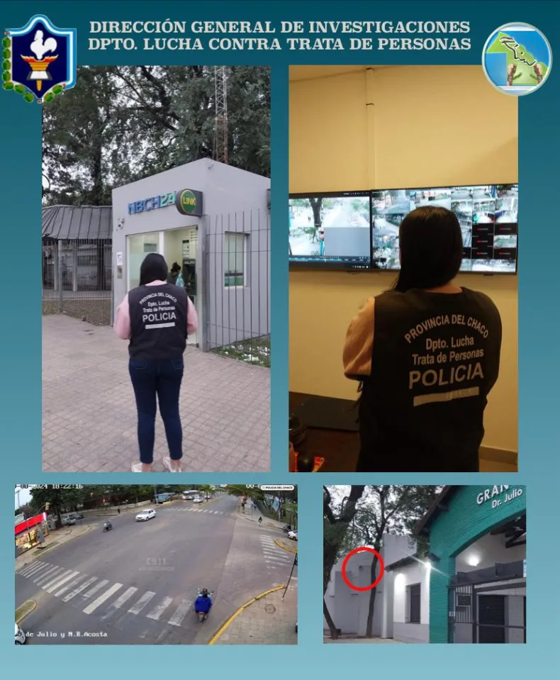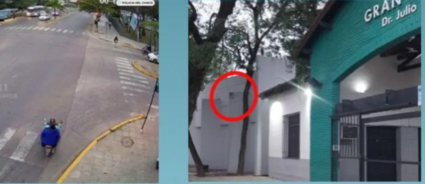Debido a esta denuncia, los agentes revisaron las cámaras de seguridad del lugar y confirmaron el relato de la mujer, ya que en la secuencia fílmica, los uniformados lograron divisar a la denunciante cuando se dirigía al cajero automático y en otra secuencia se aprecia un masculino en motocicleta tipo cros color rojo, circulando por Avenida 9 de Julio hacia los números descendente, el cual ingresa en la vereda hacia el cajero, perdiéndose del ángulo de visión, luego este individuo retoma por dicha arteria, hacia los ascendentes.