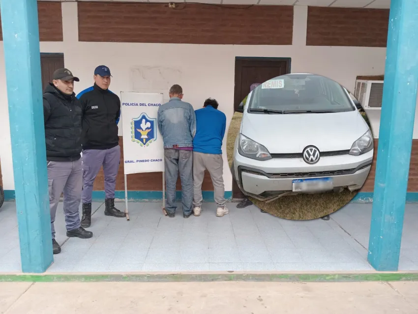 En consecuencia, a las 15.20 aproximadamente, agentes interceptaron en calle 8 acceso centro de la ciudad, al vehículo sospechoso, que era guiado por L.N.M. de 38 años, acompañado por N.F.B. de 50 años, quienes fueron conducidos a la unidad y se procedió al secuestro del rodado en cuestión.