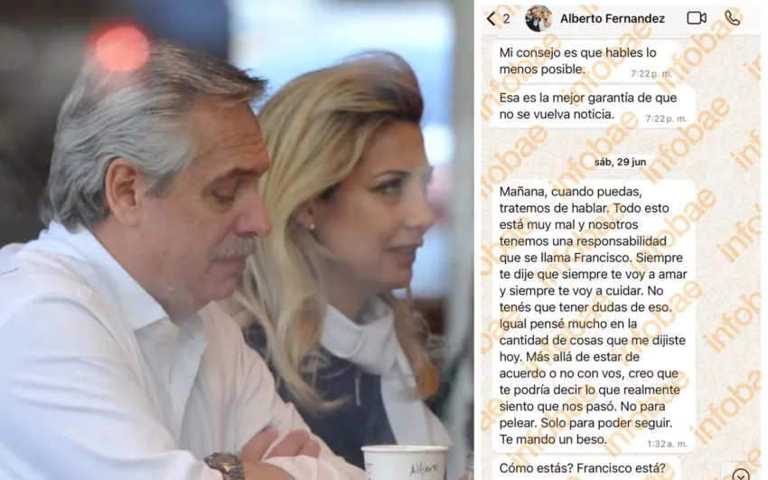 La sábana de mensajes se interrumpe el 29 de junio, en horas de la madrugada, con un extenso mensaje de Alberto Fernández: "Mañana, cuando puedas, tratemos de hablar. Todo esto está muy mal y nosotros tenemos una responsabilidad que se llama Francisco. Siempre te dije que siempre te voy a amar y siempre te voy a cuidar. No tenés que tener dudas de eso. Igual pensé mucho en la cantidad de cosas que me dijiste hoy. Más allá de estar de acuerdo o no con vos, creo que te podría decir lo que realmente siento que nos pasó. No para pelear. Solo para poder seguir. Te mando un beso".