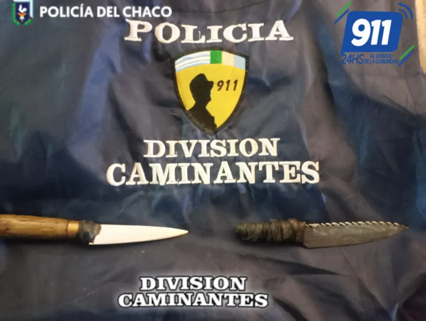 El hecho ocurrió alrededor de las 1:30, en la intersección de calles Frondizi y Arturo Illia, allí de procedió al secuestro de los elementos dos armas blancas tipo cuchillo.