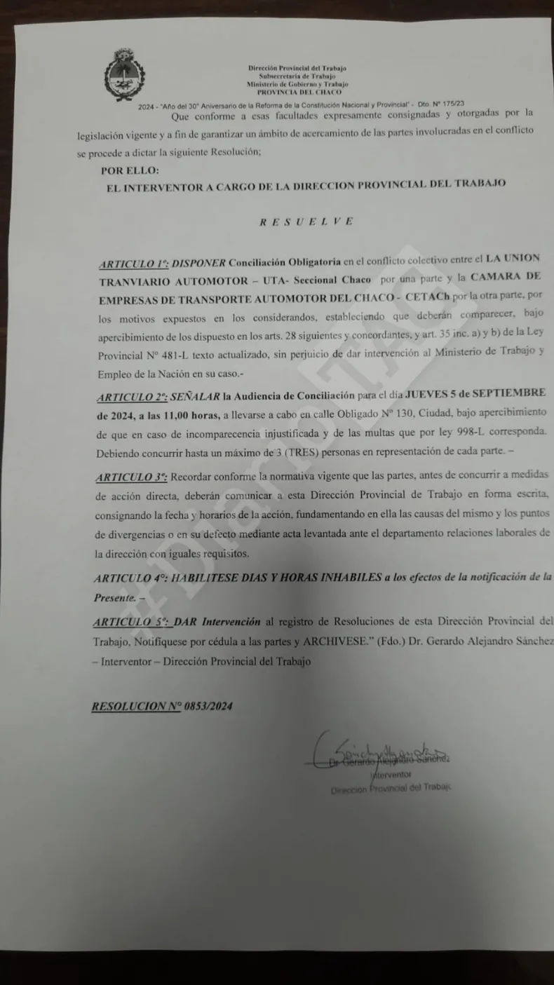 Ahora, la UTA debería acatar el plazo establecido para la audiencia de conciliación, sin embargo, hasta el momento desde el sindicato no dieron respuesta a la medida.