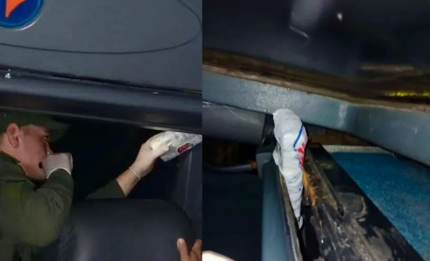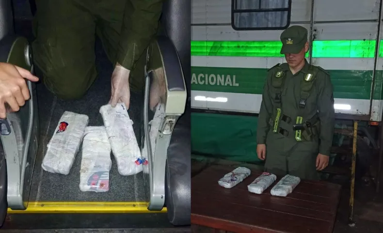 Tras detectar dentro del compartimiento del aire acondicionado, tres "panes" característicos a los utilizados para el traslado de estupefacientes, los funcionarios inspeccionaron el interior del vehículo con la asistencia del can detector de narcóticos "Olivia", el cual reaccionó al pasar por una mochila que se encontraba próxima a los paquetes hallados.