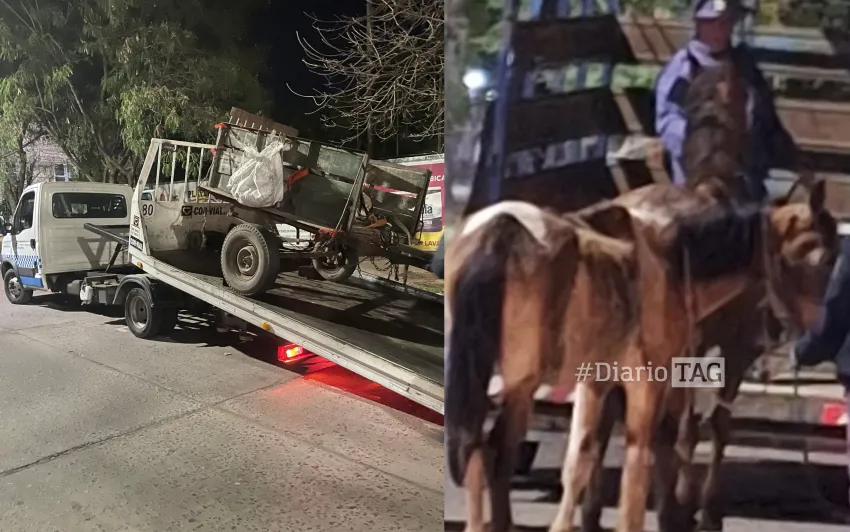 Este domingo, en cumplimiento de la ordenanza 13.812, artículo 132, que prohíbe el uso de vehículos de tracción a sangre animal, se procedió al secuestro de dos equinos y un carro en la intersección de las calles Marcelo T. de Alvear y Roberto Mora.