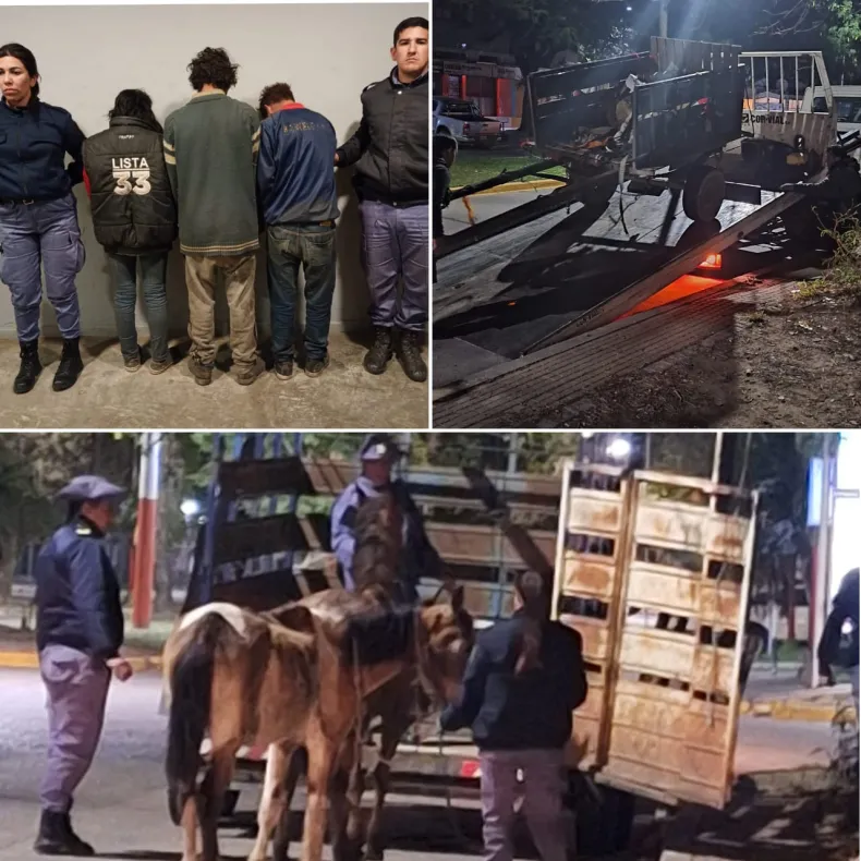 Los tres sujetos a bordo del carro, identificados como hombres de 20, 29 y 30 años, fueron notificados de una supuesta infracción a la Ley Provincial 14.346 de maltrato animal, aunque continuaron en libertad tras la intervención de la magistratura.