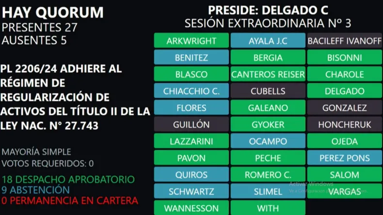 En la sesión extraordinaria que inició a las 12 horas de este lunes, la Cámara de Diputados de Chaco aprobó el blanqueo de capitales con 18 votos afirmativos y 9 abstenciones, que forma parte de iniciativas efectivizadas por Javier Milei. Los legisladores votaron a favor de la eliminación de la percepción de Ingresos Brutos en pagos de medios electrónicos.