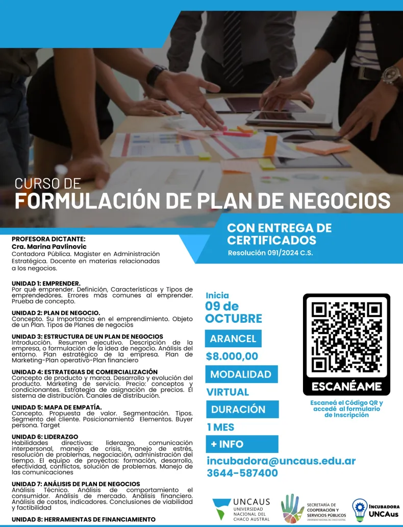 UNCAUS abrió inscripciones para un nuevo Curso de Formulación de Plan de Negocios