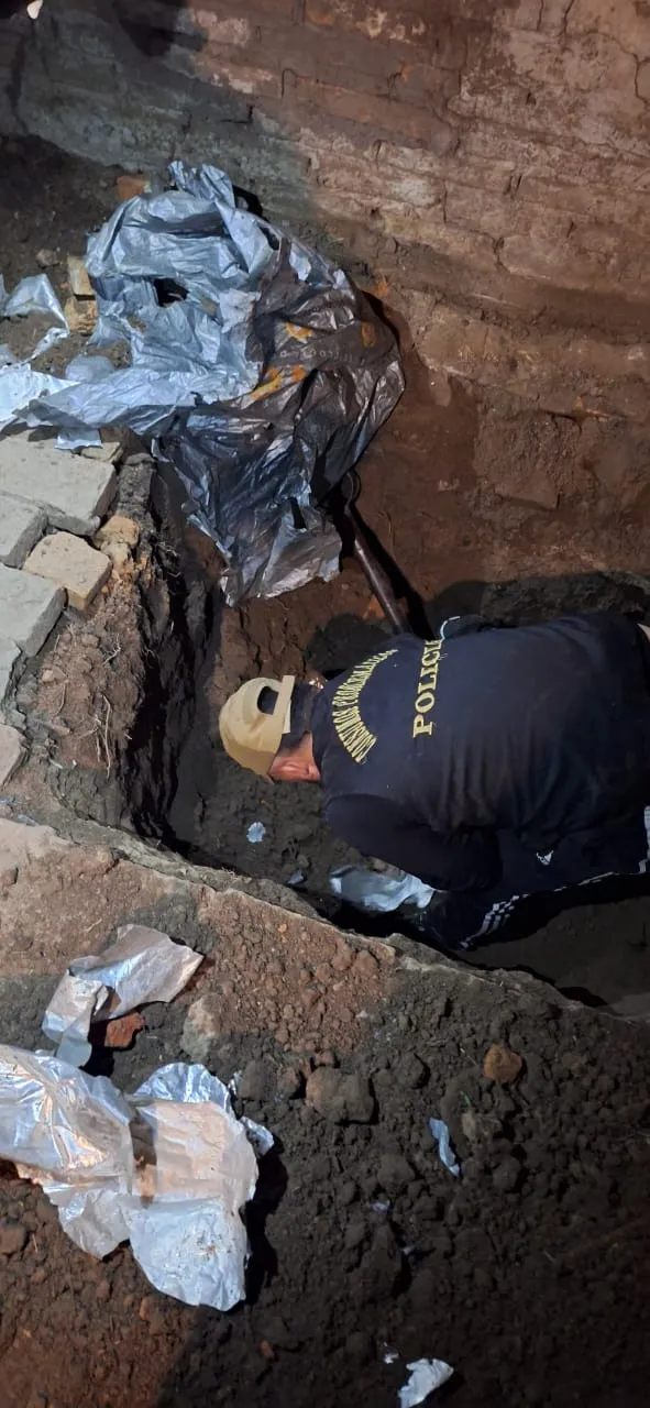 Durante el operativo, identificaron a dos sujetos de 42 y 19 años. Al registrar la propiedad descubrieron en el patio trasero, oculto en un pozo, cuatro envoltorios transparentes termosellados con un peso total de 4,036 kg de cogollos de marihuana, además de una balanza y dos bolsas de arpillera. La fiscalía interviniente ordenó iniciar actuaciones por supuesta infracción a la ley 23.737 de estupefacientes.