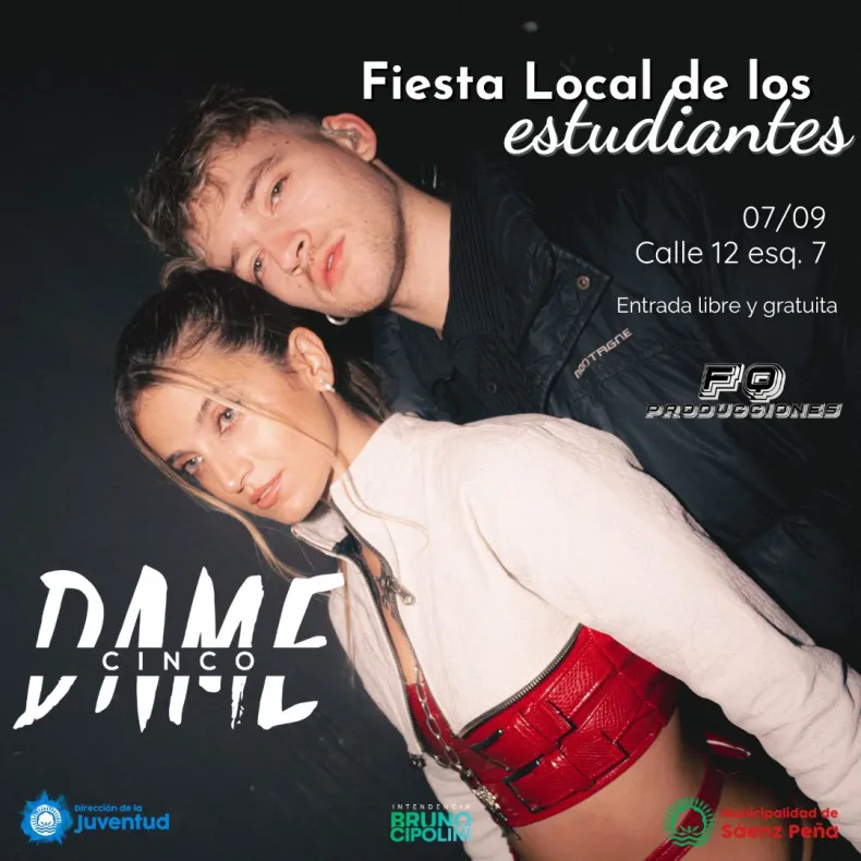 Con la actuación de "Dame 5" se elegirá a la Reina y el Rey de los Estudiantes en Sáenz Peña
