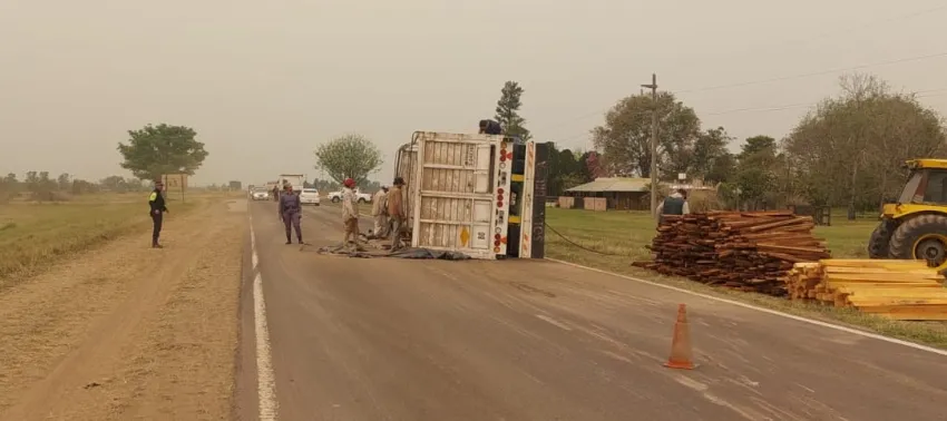 Un camión que transportaba maderas volcó este lunes, alrededor de las 14, sobre la Ruta 16 a la altura del kilómetro 145, cerca de Napalpí.
