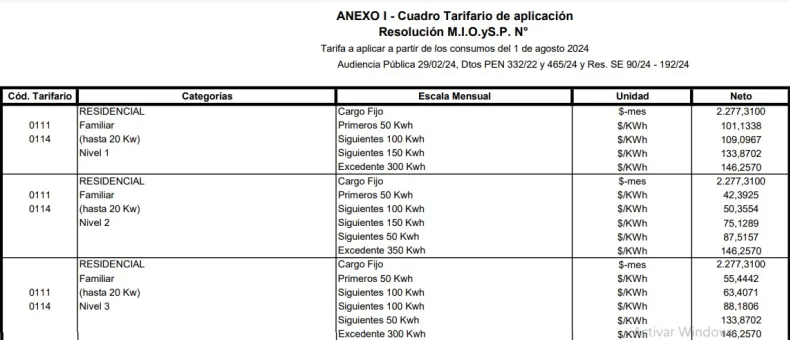 Si bien parece un trabajo engorroso con tantos números, es sencillo y sumamente claro. Los montos dependen de la categoría de las residencias, los consumos mensuales y, por último, si reciben o no los subsidios de Nación.
