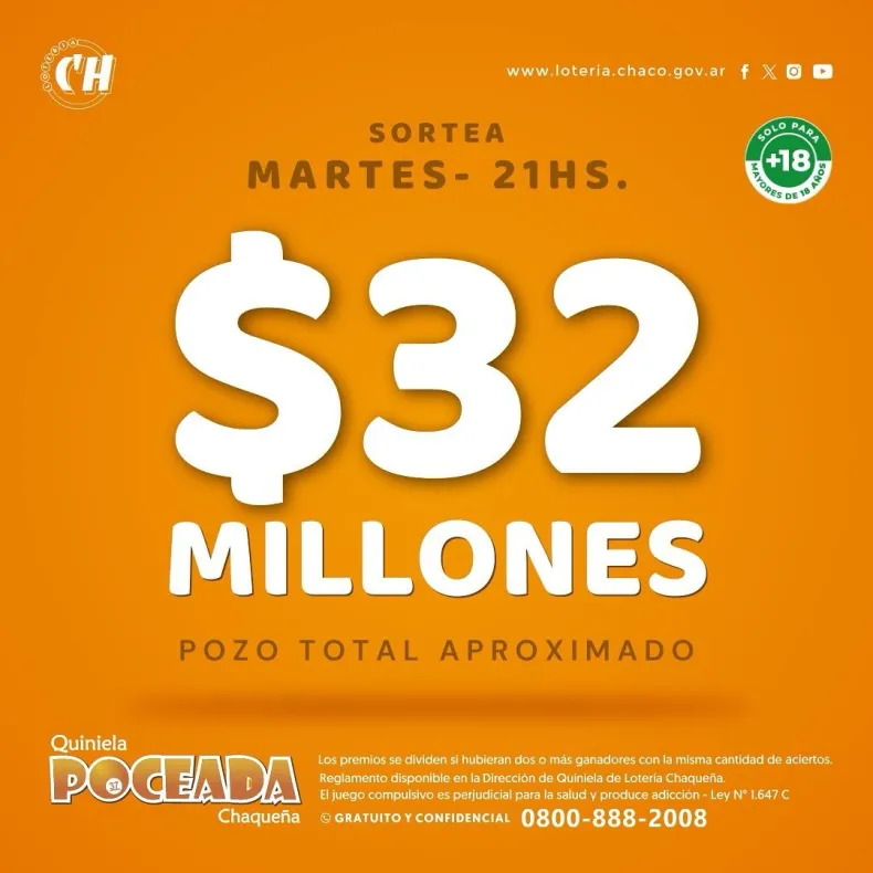 Este martes 10 de septiembre, la Lotería Chaqueña ofrece un pozo que genera una gran expectativa entre los apostadores. La Poceada Chaqueña, uno de los juegos más populares de la provincia, acumula un pozo inicial de más de 32 millones de pesos.