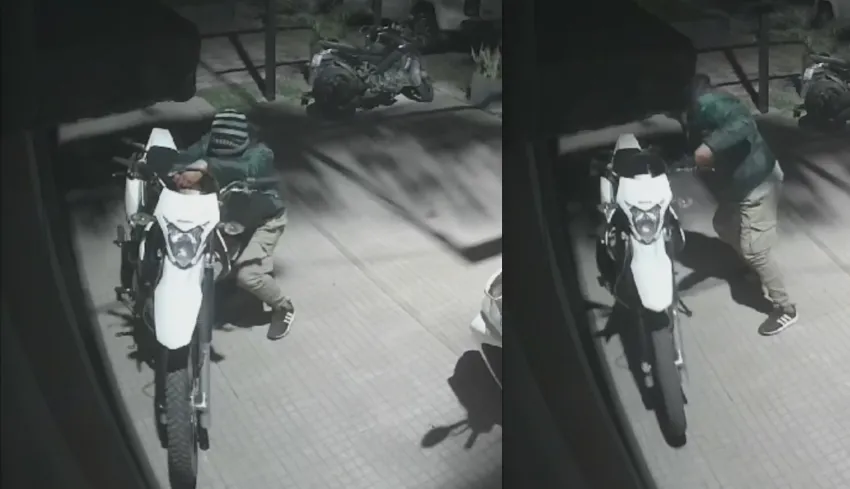 Dejó su moto en la vereda del gimnasio, se la robaron y todo fue registrado por cámaras de seguridad