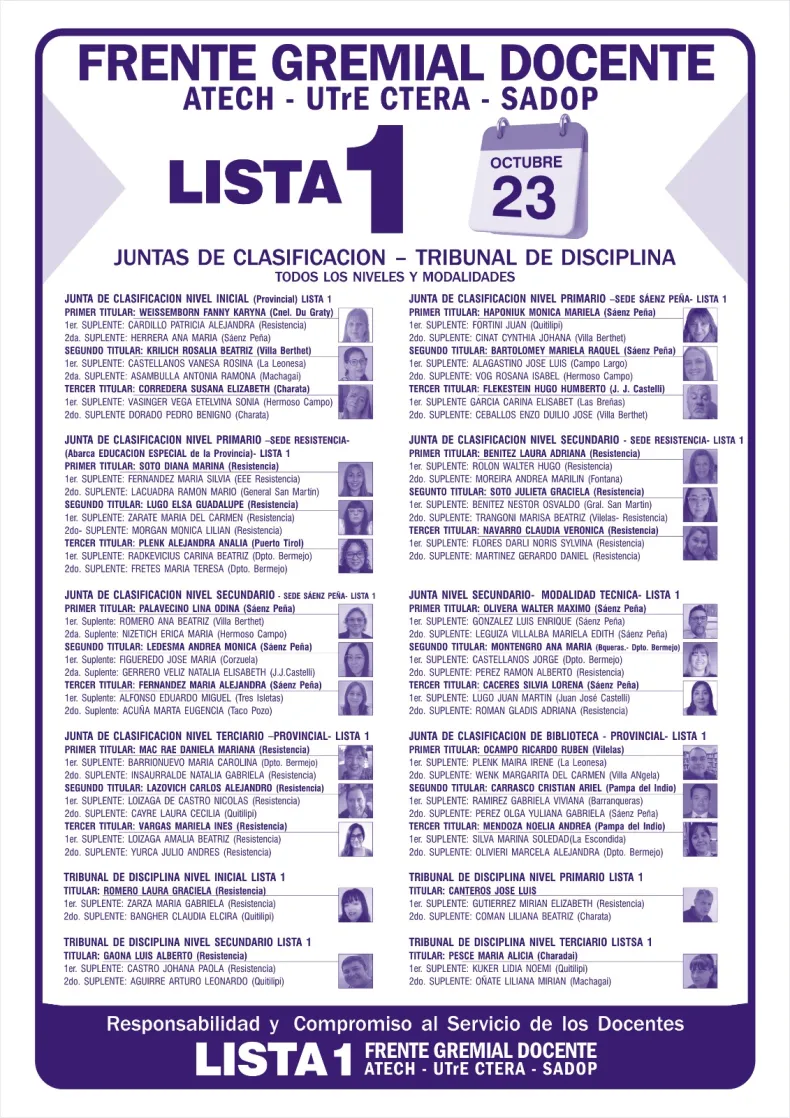 En la sede de ATECH, los sindicatos docentes que integran el Frente Gremial lanzaron la Lista 1 y presentaron a sus candidatos para formar parte de la Junta de Clasificación y Tribunal de Disciplina del Ministerio de Educación. La elección está prevista para el mes de octubre.