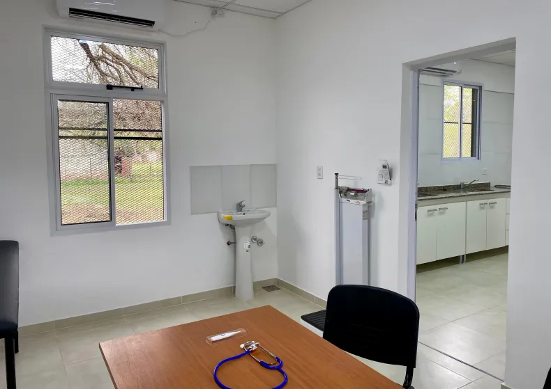 El CAPS inaugurado dispone de un consultorio con actividades de enfermería (tendrá 2 enfermeras), farmacia, heladeras para mantener la cadena de frío de vacunas; provisión de agua potable. Cuenta con sanitarios tanto para el personal como para el público por fuera del área de servicios técnicos.