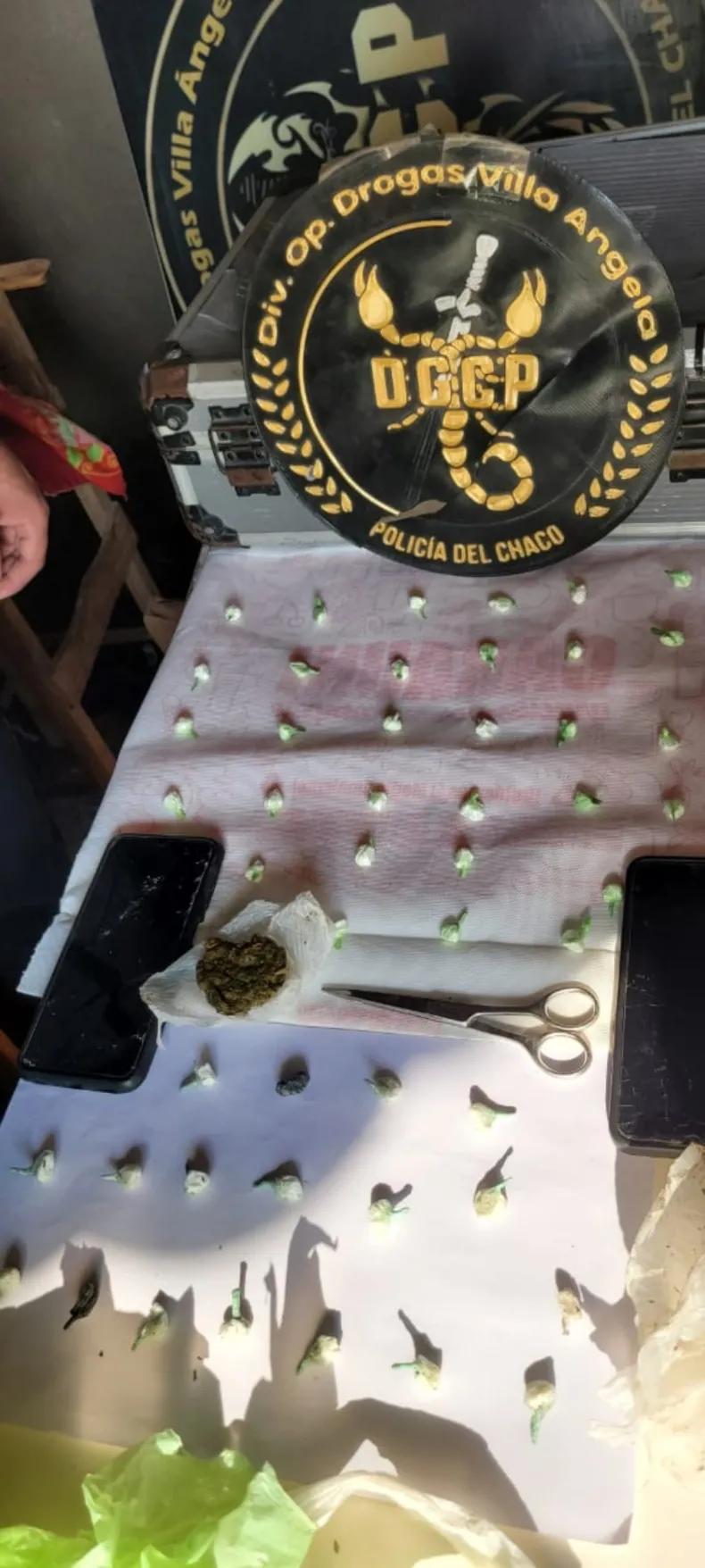 De esta manera, el primer domicilio allanado se situó en la calle Marcelo T. Alvear en el barrio Porvenir donde se secuestró 52 bochitas de nylon conteniendo en su interior cocaína con un peso total de 29,39 gramos, un envoltorio de nylon con marihuana con un peso total de 9,87 gramos, un teléfono celular Samsung J4, una tijera, $ 174.650, y recortes de nylon.