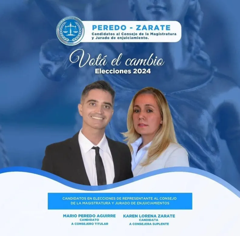 La lista presentada por el Consejo Profesional de Abogacía es encabezada por Ricardo Urturi y su par Cecilia Morante, mientras que el Colegio presentó a Mario Peredo Aguirre y a Karen Lorena Zarate.