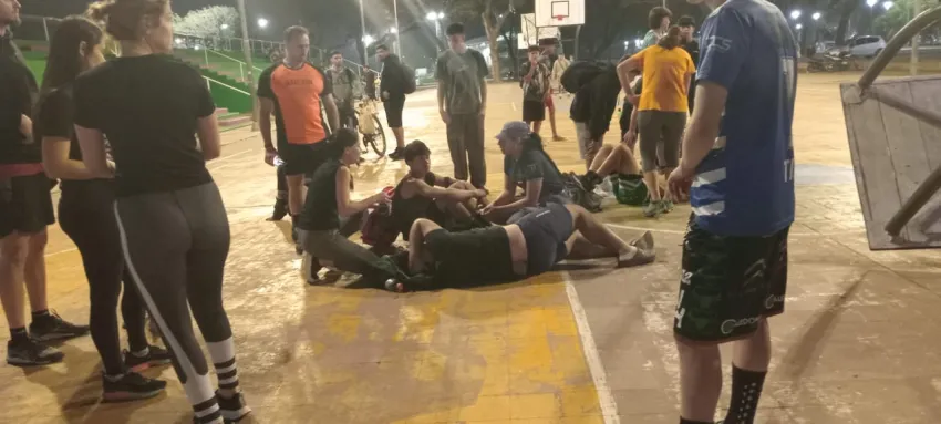 La estructura de hierro y el tablero cayeron al suelo en medio de un partido de básquet. Los heridos fueron trasladados al Perrando.