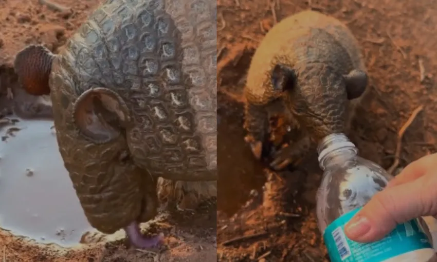 La severa sequía golpeó la fauna silvestre: la reacción de un armadillo al poder beber agua nuevamente