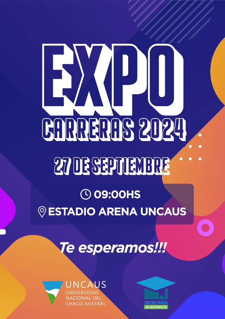La Universidad Nacional del Chaco Austral realizará una nueva expo carreras, para dar a conocer más de 20 carreras que se dictan con modalidad presencial y a distancia. Esta jornada se realizará el día viernes 27 de septiembre, a partir de las de 9 horas, en el estadio Arena UNCAUS.