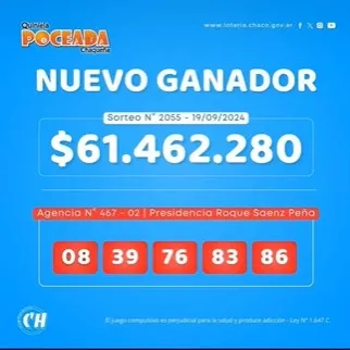 El sorteo N° 2055 de la Poceada Chaqueña, realizado este jueves 19 de septiembre, dejó a un nuevo ganador en la provincia.