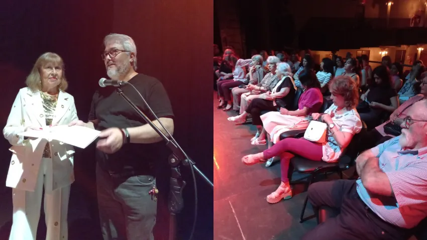 Anoche, durante la presentación de la obra Electra De Sofocles, en el Teatro Guido Miranda de Resistencia, fue reconocido el grupo de teatro leído " El Olimpo" y su directora Profesora Gladys Dora Villalba. El mismo estuvo a cargo del legislador Samuel Vargas y María Emilia Aguilar autora de la iniciativa.