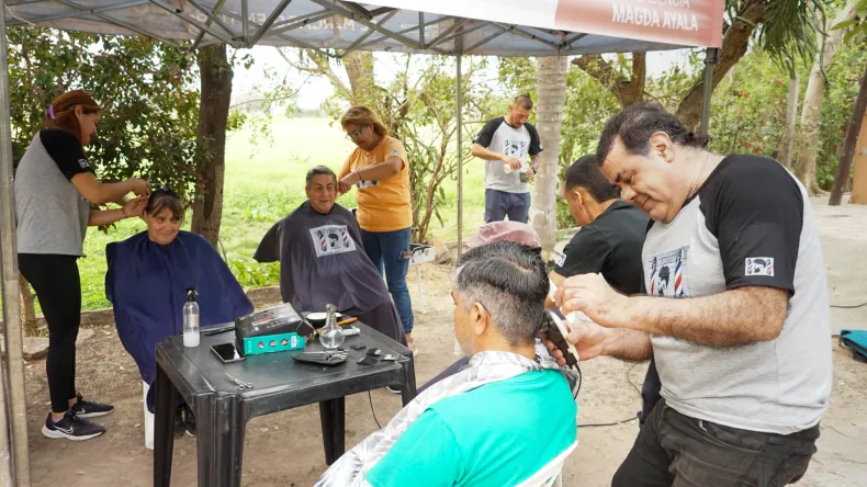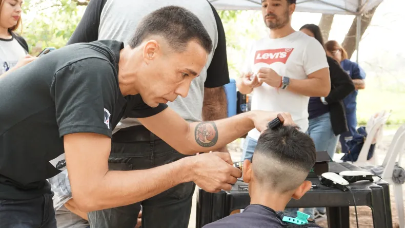 Los equipos de Diversidad y de la Dirección de Bromatología ofrecieron a los vecinos cortes de cabello gratuitos y se aplicaron vacunas antirrábica y desparasitación para mascotas.