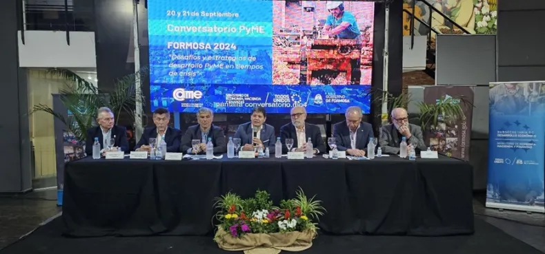 Durante la visita de CAME a Formosa se llevó a cabo el conversatorio pyme "Desafíos y estrategias de desarrollo pyme en tiempos de crisis". A lo largo del evento, realizado de forma mancomunada entre el sector público y el privado, se expuso sobre estrategias en épocas de crisis para empresas familiares; obras y acciones para el desarrollo de Formosa; política industrial y líneas de financiamiento; experiencias de pymes locales; y el panorama de las pymes ante la nueva macro nacional.