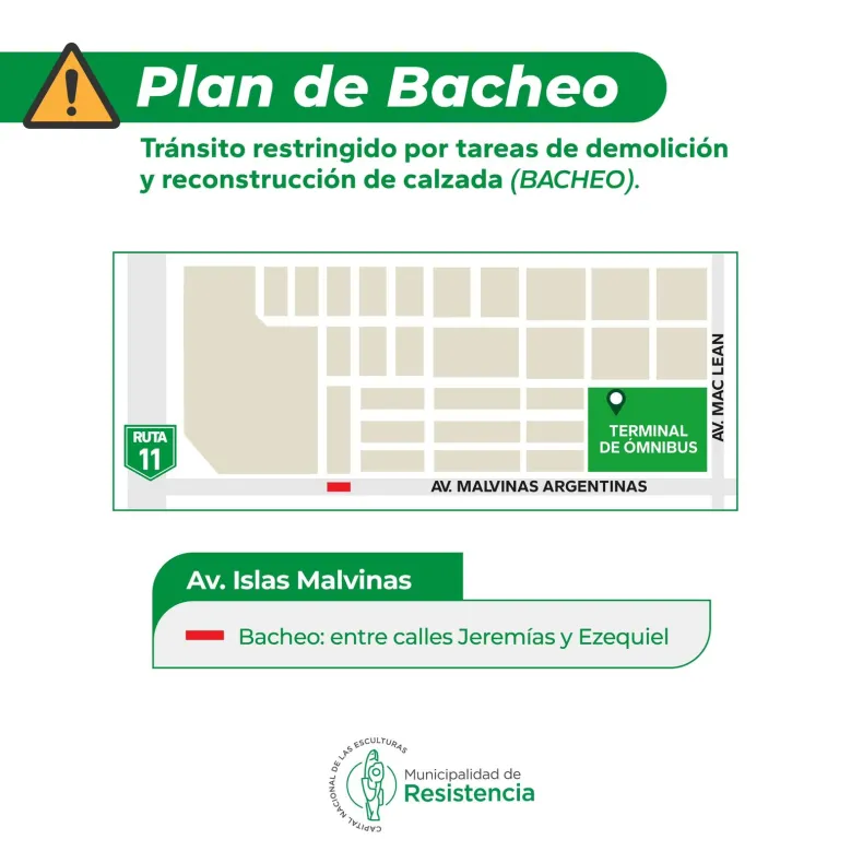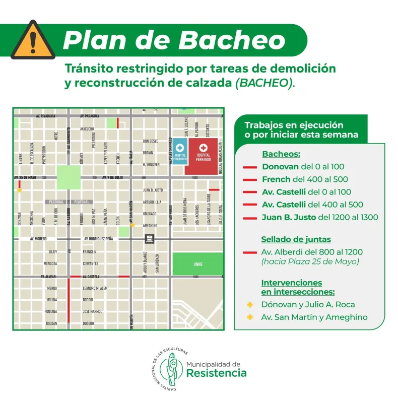 La ciudad de Resistencia está experimentando demoras en la circulación vehicular debido a trabajos de bacheo y reparación de calzada en diferentes zonas. Desde la Municipalidad, se solicita a los conductores circular con precaución, respetar la señalización y tomar rutas alternativas para evitar congestiones.
