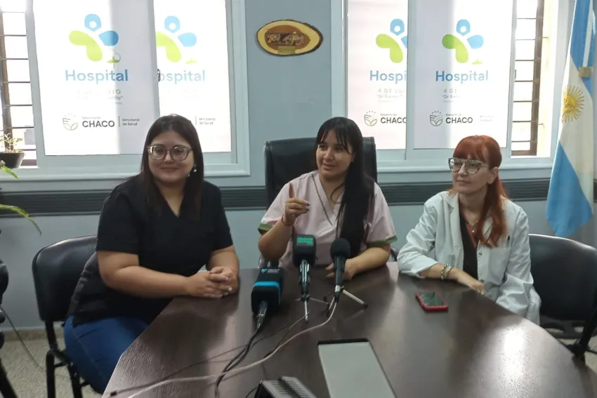 Magali Barrios, Eugenia Brisio y Jazmín Roldan, profesionales del Hospital 4 de Junio en Obstetricia, Ginecología y Bioquímica anunciaron en conferencia de prensa la realización de una jornada para promover la consejería y la prevención del embarazo en adolescentes.