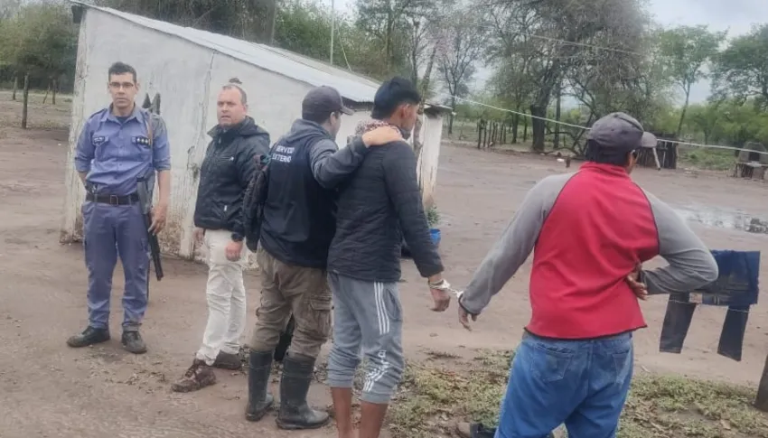 Al llegar, los policías observaron a dos hombres que intentaron huir hacia un monte cercano. Tras una breve persecución, fueron detenidos y se identificaron como A.N y B.M.R.Ambos presentaban lesiones visibles y estaban vestidos con prendas que mostraban manchas rojizas similares a sangre, además de portar cuchillos con restos de lo que pareciera ser sangre.