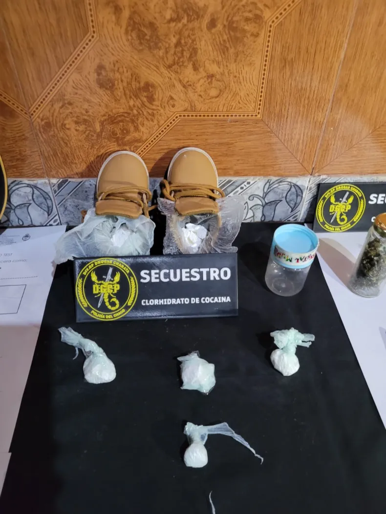 El primero de los allanamientos se realizó sobre calle 9, entre 23 y 34 del barrio 300 Viviendas, donde hallaron dos envoltorios con 21 gramos de cocaína, recortes de bolsas, 17 mil pesos en efectivo, una escopeta calibre 38 y dos cartuchos.