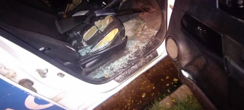 Con los datos aportados, la policía pudo dar alcance al joven mientras huía y al momento de ser detenido, repentinamente salieron a la vereda un grupo de siete personas, que comenzaron a atacar con ladrillos al personal policial provocando la fuga del sujeto demorado y daños en los cristales del vehículo policial.