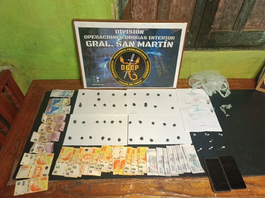 En el lugar se encontraba un hombre de 36 años, quien fue notificado en una causa por "Supuesta Infracción a la Ley 23.737 de Estupefacientes". Durante la inspección, los agentes secuestraron 12 envoltorios de cocaína, 41 dosis de marihuana, dos teléfonos celulares, varios recortes de nylon y $ 98.000 pesos.