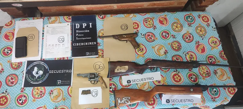 Fue así que esta mañana se realizó el allanamiento en la vivienda del acusado, ubicada en la calle Luis de las Casas al 2800 aproximadamente. Durante el operativo, la Policía secuestró un teléfono celular Samsung A23, identificado como el dispositivo utilizado para enviar las amenazas. Además, se incautaron tres aires comprimidos y un revólver calibre 32 con siete cartuchos, elementos que reforzaron las pruebas en su contra.