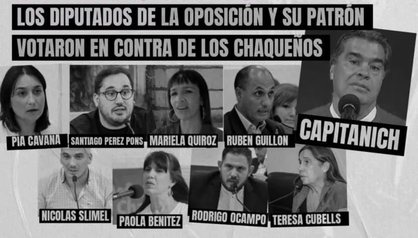 En su publicación, Zdero afirmó: "Los diputados de la oposición y su patrón votaron en contra de los chaqueños", haciendo referencia a los legisladores Pía Cavana, Santiago Pérez Pons, Mariela Quirós, Rubén Guillón, Nicolás Slimel, Paola Benítez, Rodrigo Ocampo y Teresa Cubells, quienes integran la lista de los que rechazaron el proyecto.