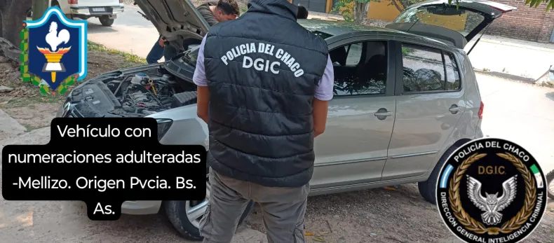 Este martes cerca del mediodía la Dirección General de Inteligencia Criminal de la Policía del Chaco secuestró un automóvil robado en la ciudad de Buenos Aires que circulaba por las calles de Resistencia con numeraciones adulteradas.