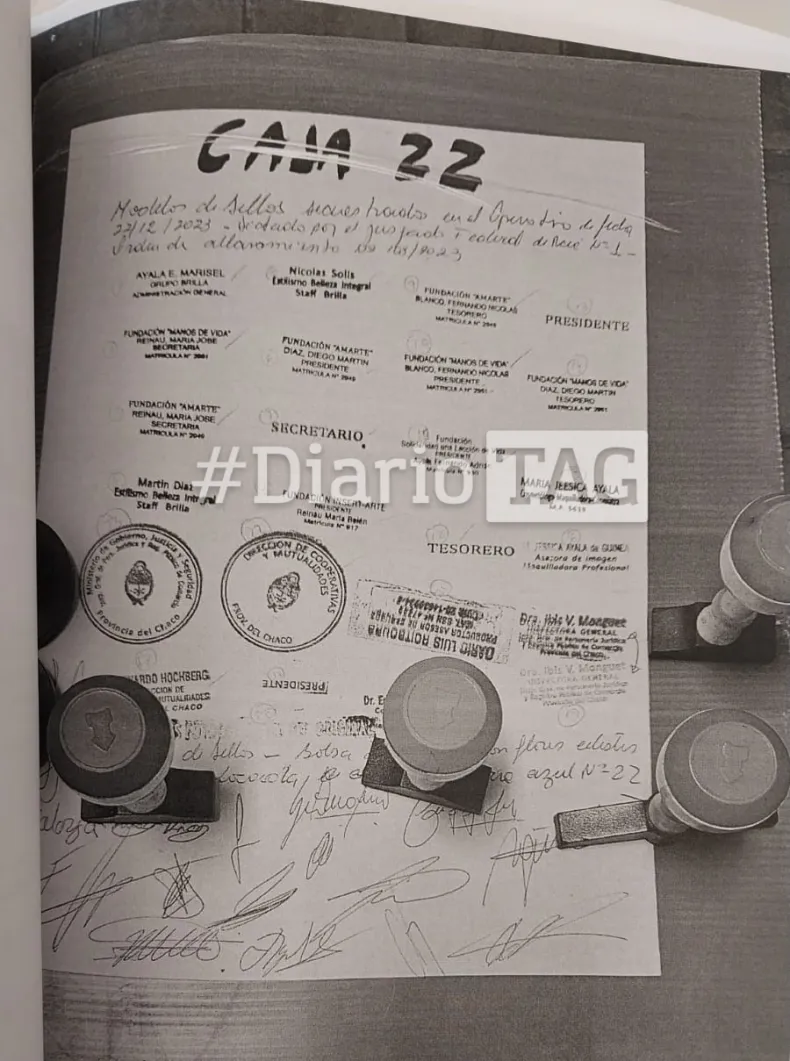 Tras eso, se desarrollaron una serie de allanamientos entre los que se descubrió la existencia de sellos aparentemente falsos que fueron secuestrados y según las investigaciones, habrían sido utilizados de manera fraudulenta en la ejecución de las maniobras ilegales. Además, se descubrió la existencia de nuevas entidades, incluyendo cooperativas y fundaciones, que amplían el entramado ilícito.