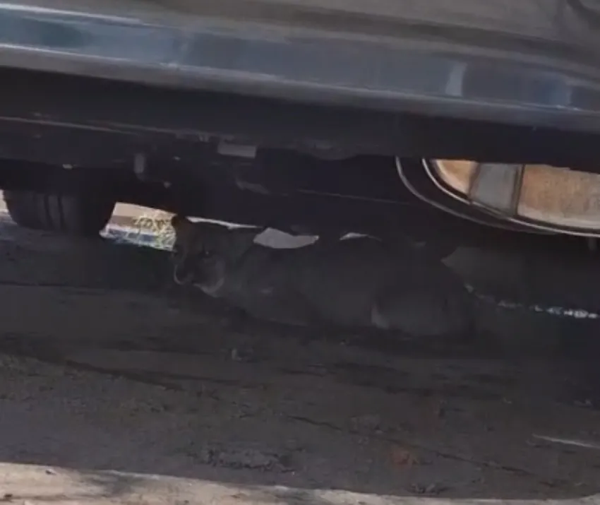 Aparentemente, se encontraba en buen estado de salud, aunque muy asustado; incluso estuvo resguardado durante algunos minutos debajo de un automóvil estacionado en la zona.
