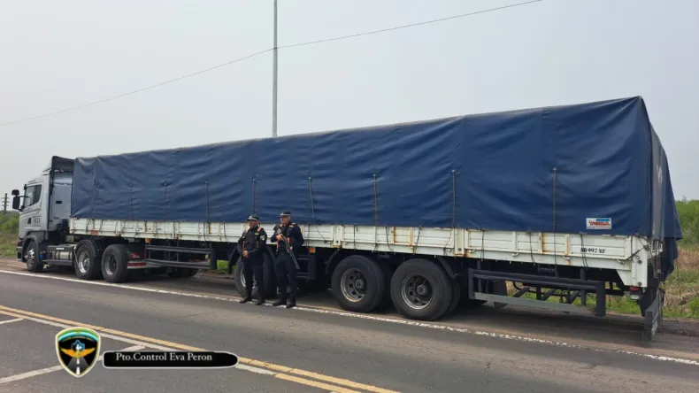 Este jueves por la mañana, personal de control vial detuvo un camión en el puesto de control de Puerto Eva Perón, ubicado en la Ruta Nacional 11, a la altura del kilómetro 1102.5. El vehículo transportaba 900 bolsas de azúcar marca Ingenio Santa Bárbara, de 50 kg cada una, con origen en la ciudad de Corrientes y destino en Clorinda, Formosa.