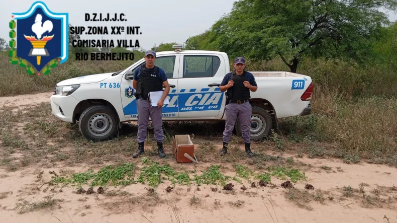 La Policía secuestro 20 plantas de marihuana que eran transportadas por dos sujetosen una conservadora en Villa Río Bermejito.