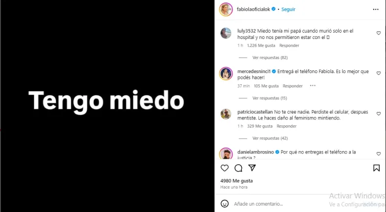 "Tengo miedo", publicó Yáñez desde España en sus cuentas de Instagram y X (ex Twitter). Además, este martes debía presentarse ante la justicia en Madrid para entregar su celular con el objetivo de que se tome una copia, pero no lo hizo por razones personales. Sin embargo, no se trata de una falta sino de un incidente procesal y se coordinó una nueva fecha.