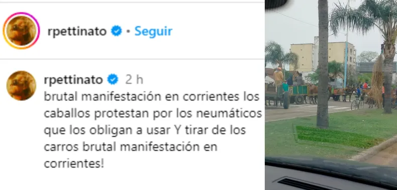 El conductor de televisión al observar el panorama desde su auto realizó una publicación en Instagram con una fotografía de la protesta y el texto: "Brutal manifestación en corrientes los caballos protestan por los neumáticos que los obligan a usar Y tirar de los carros brutal manifestación en corrientes!".