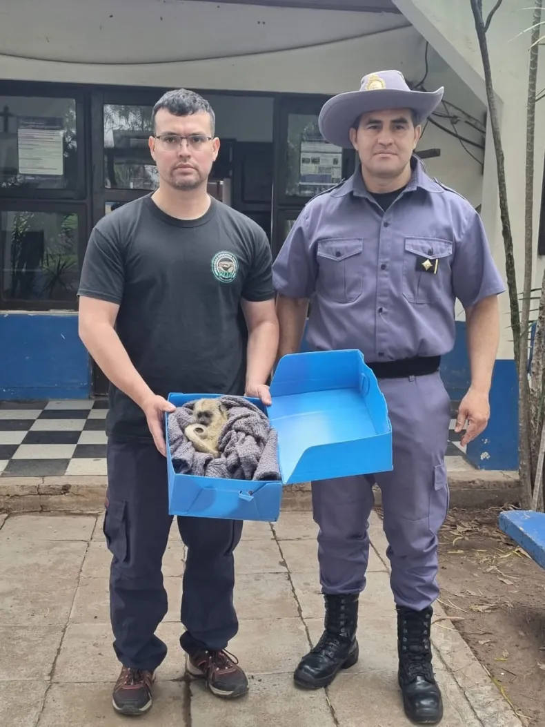 Un grupo de ciudadanos del barrio Los Teros realizó un importante gesto al entregar voluntariamente un ejemplar de mono carayá recién nacido al Departamento de Seguridad Rural y Ambiental. La rápida intervención comunitaria permitió que el pequeño primate recibiera la atención necesaria tras ser trasladado por la Brigada Operativa Ambiental (BOA) a la clínica veterinaria del doctor Fernando Brañas, donde fue sometido a un chequeo especializado para asegurar su bienestar.