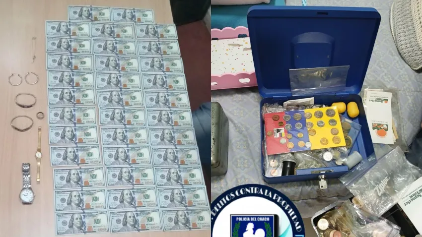 El personal de la División Delitos Contra la Propiedad de la Policía del Chaco, tomó conocimiento de un robo a una vivienda de la ciudad, donde el morador de 41 años manifestó que se ausento por tres días de su domicilio de la calle Padre Cequeira al 400 y al regresar se dio cuenta la faltante de dinero, dólares, relojes y alhajas.