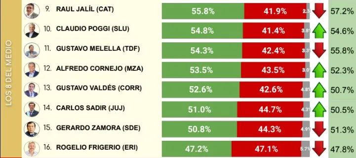 Cabe mencionar que el mandatario provincial no presentó una gran variación respecto al mes de septiembre de 2024. En el mes pasado al Zdero también estuvo en el quinto puesto, pero con un 59,7% de imagen positiva y un 36,5% de imagen negativa.