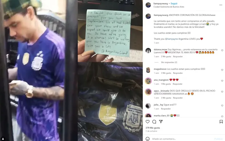 En Argentina, el cantante tuvo varios contactos con sus fanáticas. Hace una semana, una de las páginas de su fandom compartieron una foto Liam vistiendo la camiseta de la Selección argentina. "Le queda perfecta", escribieron.