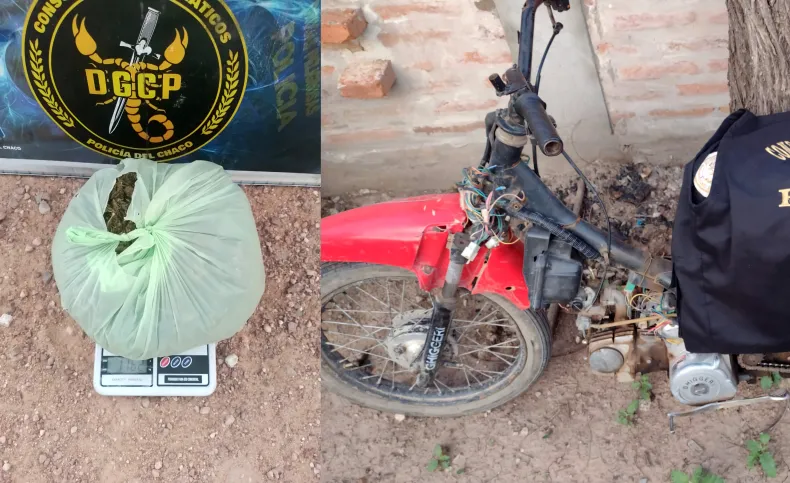 Ambos sujetos resultaron detenidos y se procedió al secuestro de la droga, un celular y de la motocicleta marca Ghiggeri 110 cilindradas sin plásticos, notificando infracción a la Ley 23.737 en función con Ley Provincial 2304-N de Narcomenudeo.