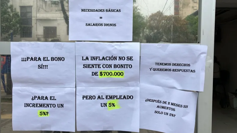 "Lo que estamos reclamando hoy desde el sector de la Caja Municipal tiene que ver con los aumentos salariales otorgados en los últimos meses, los cuales consideramos muy desafortunados, especialmente porque el Ejecutivo Municipal está percibiendo un bono establecido por ordenanza desde marzo. Esto generó malestar y conflicto entre los compañeros", manifestó Iván Sosa Gómez, secretario gremial de la Asociación de Empleados de la Caja Municipal de Resistencia.